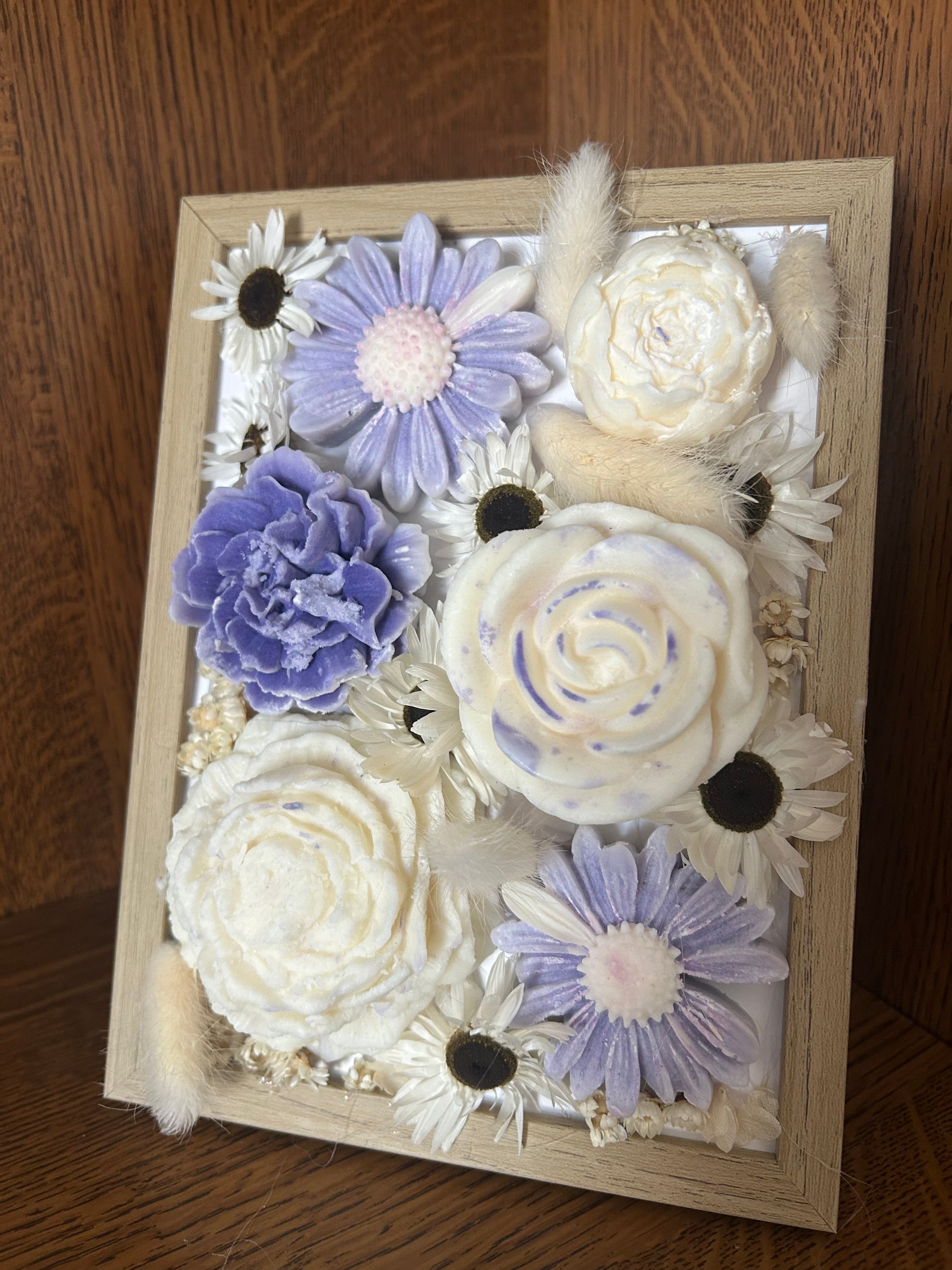 Découvrez notre cadre parfumé, une création artisanale et élégante qui allie décoration et ambiance olfactive. Chaque pièce est unique, soigneusement composée avec des fleurs en fondants parfumés, pour un rendu visuel délicat et un parfum envoûtant.
